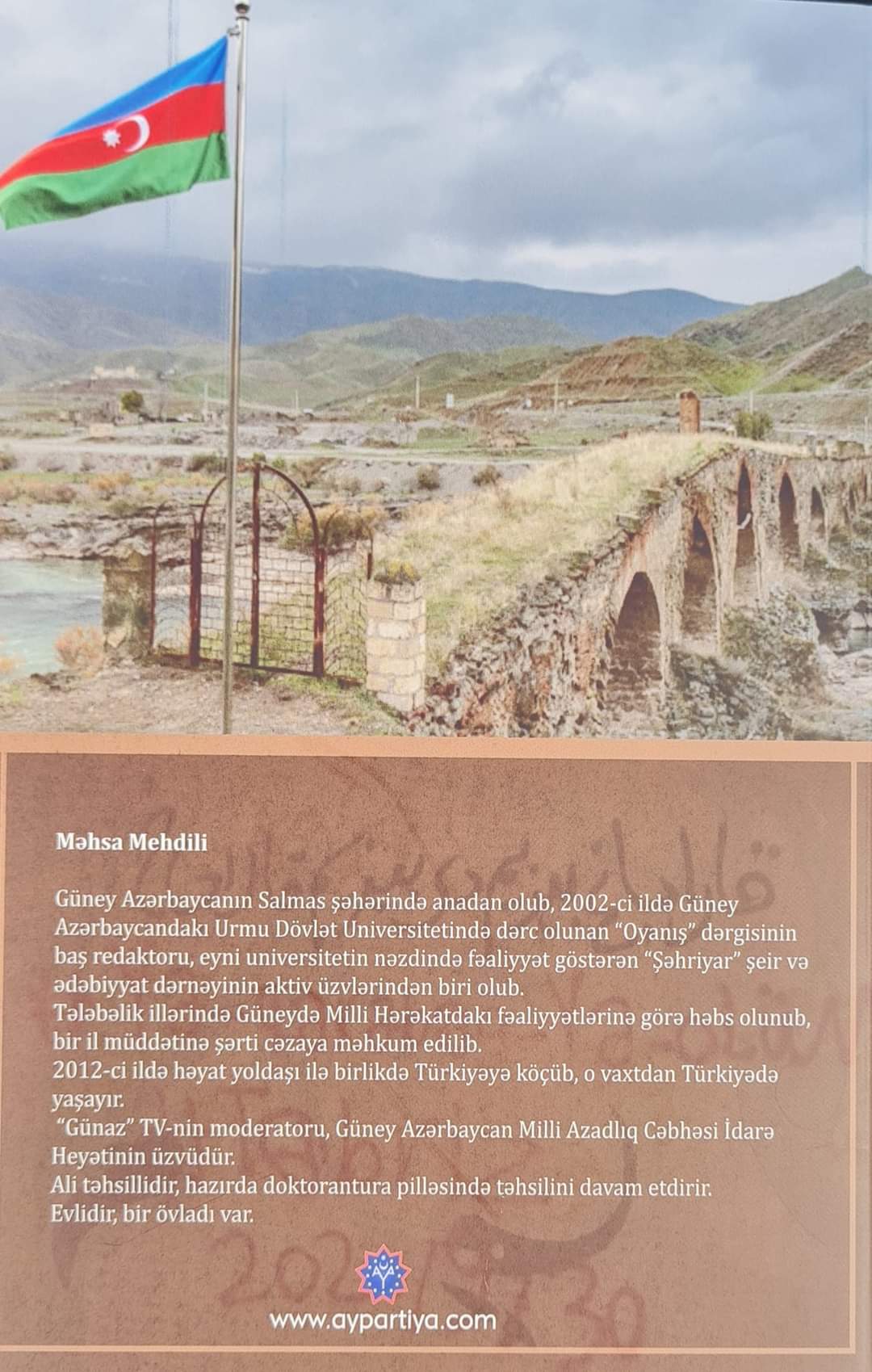Bu, Güney Azərbaycandan olan milli fəal, hazırda Ankarada yaşayan Məhsa Mehdilinin yazdığı “44 Günlük Qarabağ Savaşında Güney Azərbaycan" kitabıdır.
